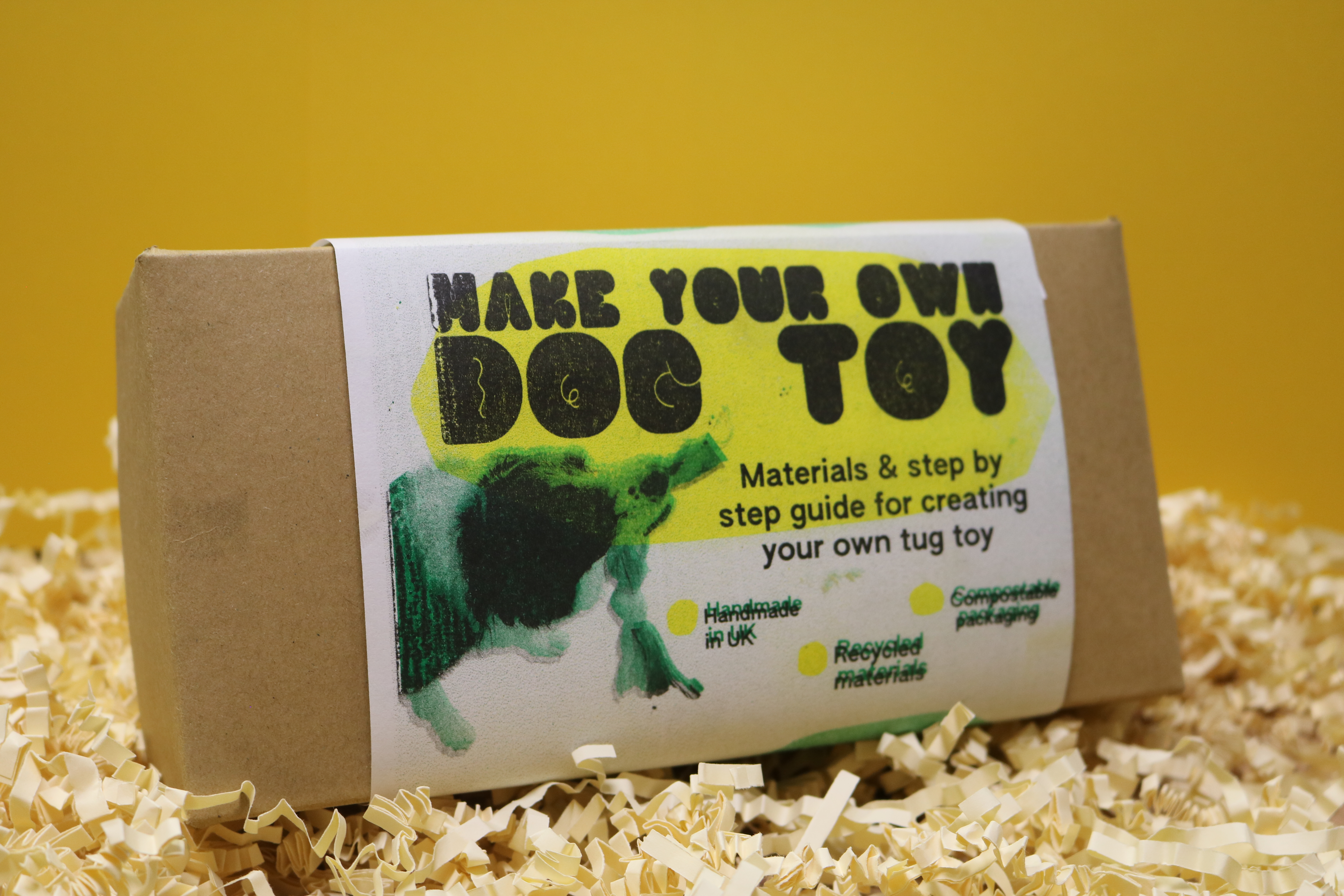 A make your own tug toy kit from recycled and sustainably sourced fleece offcuts. Handmade in the UK in small batches with fully compostable packaging.